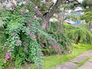 白い萩が終わり、今は濃いピンクの花が彩りを添えています。