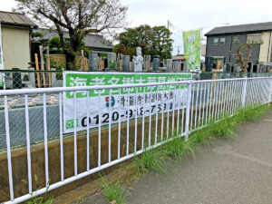 海老名樹木葬墓地の産業道路側に目印として横断幕を設置いたしました。