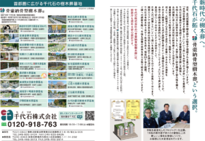 2025年12月22日発売「ブームの最前線」に千代石の骨壷納骨型樹木葬の広告が掲載されました。 全国の大型書店での発売となりますので、是非お手にとっていただければ幸いです。 ※掲載は218-219ページです。